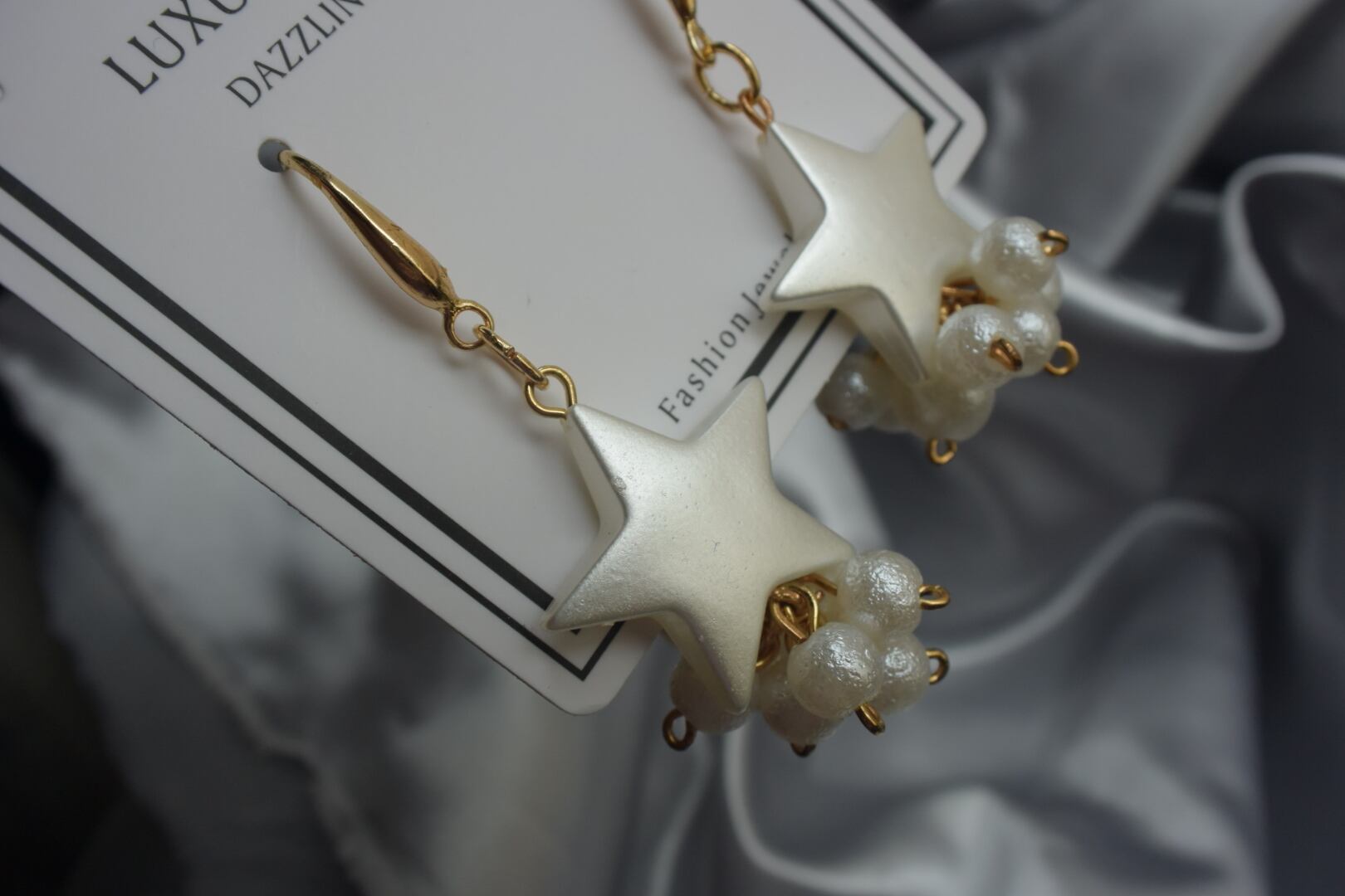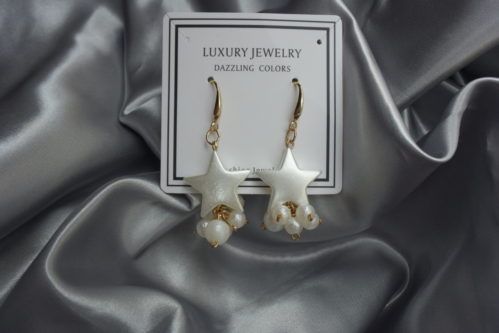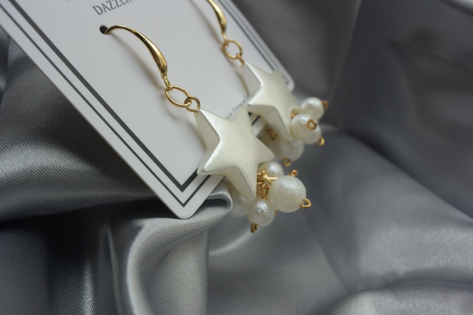 ホワイトパールの星とコットンパールが大人かわいい大人かわいいピアスです♪