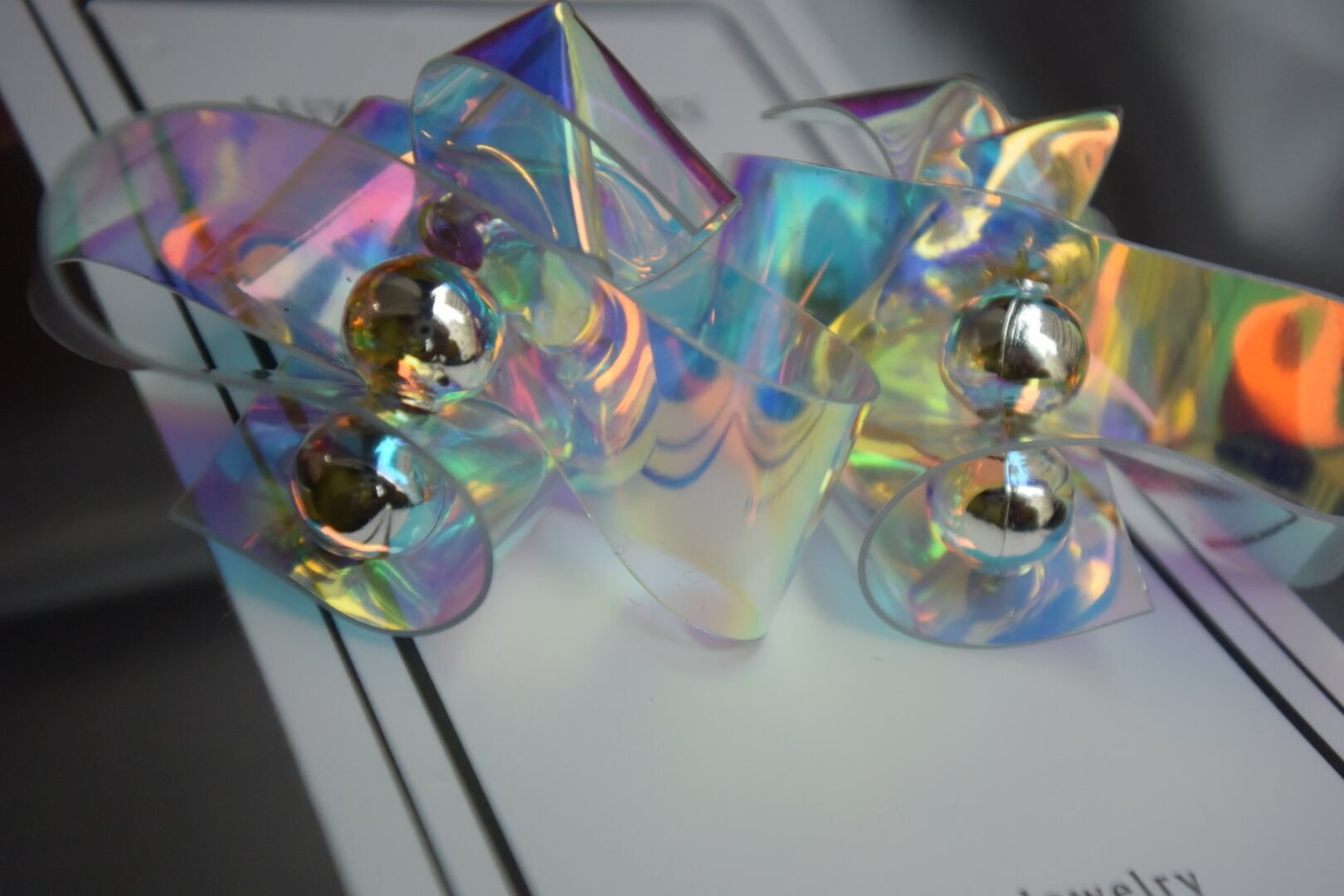 オーロラとシルバービーズでおおぶりより少しだけ小さめに仕上げました♪