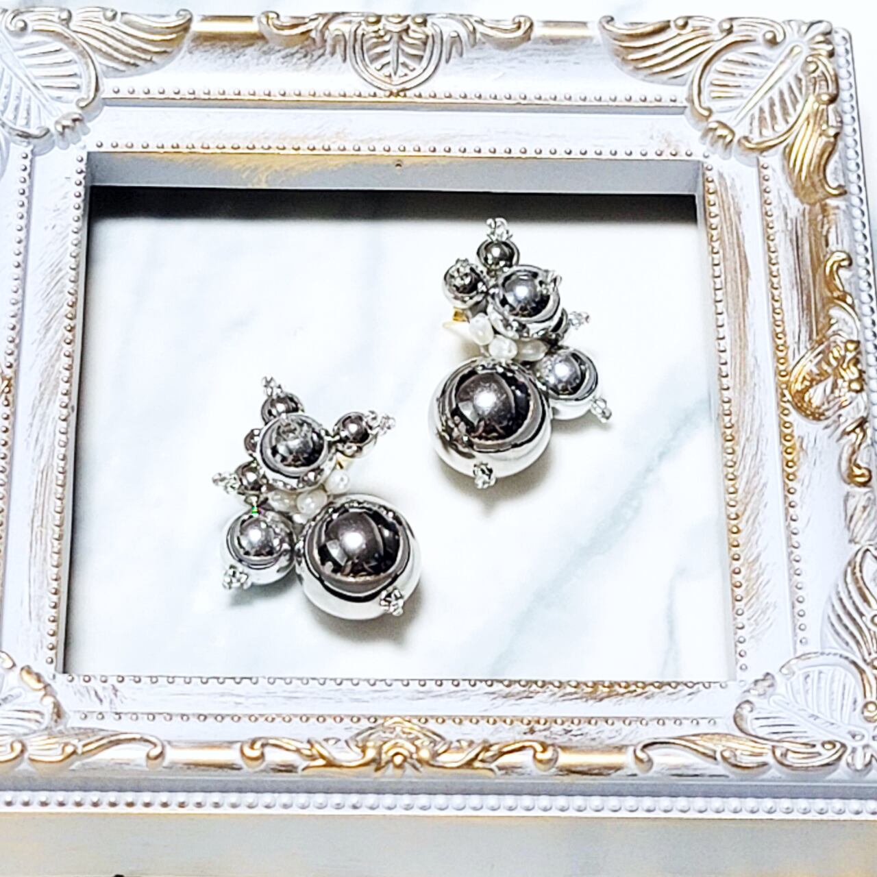 シルバービーズと淡水パールを使い存在感のある大人カジュアルにあわせた個性的なデザイン