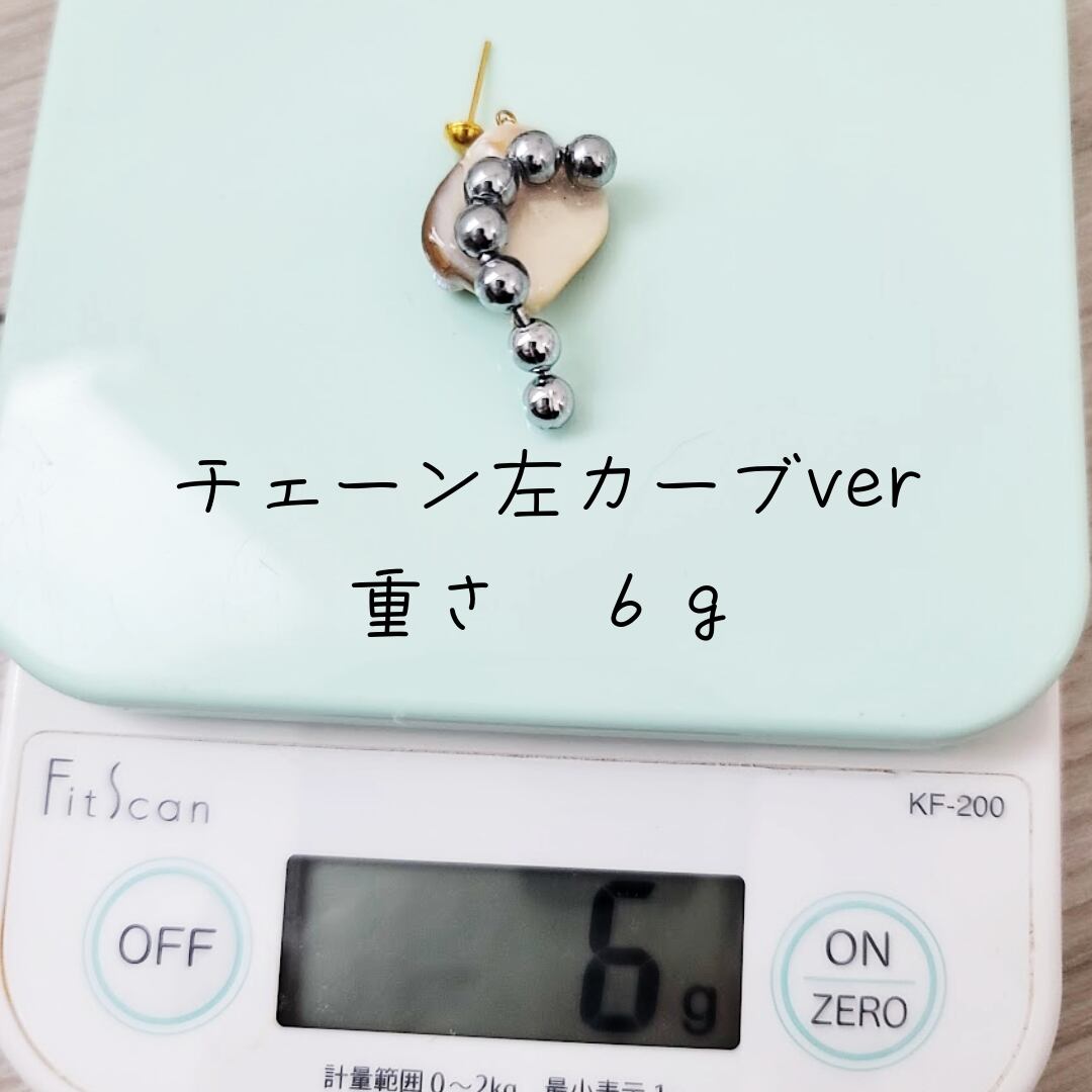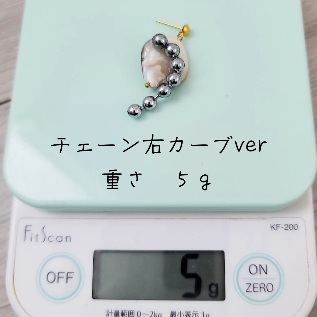 こちら似ている淡水シェルはあったとしても色、重さ、形、どれをとってもまったく同じ!というものはございません。どうしても個体差がございます。なので、淡水シェルを使用したデザインは全て一点物となります。